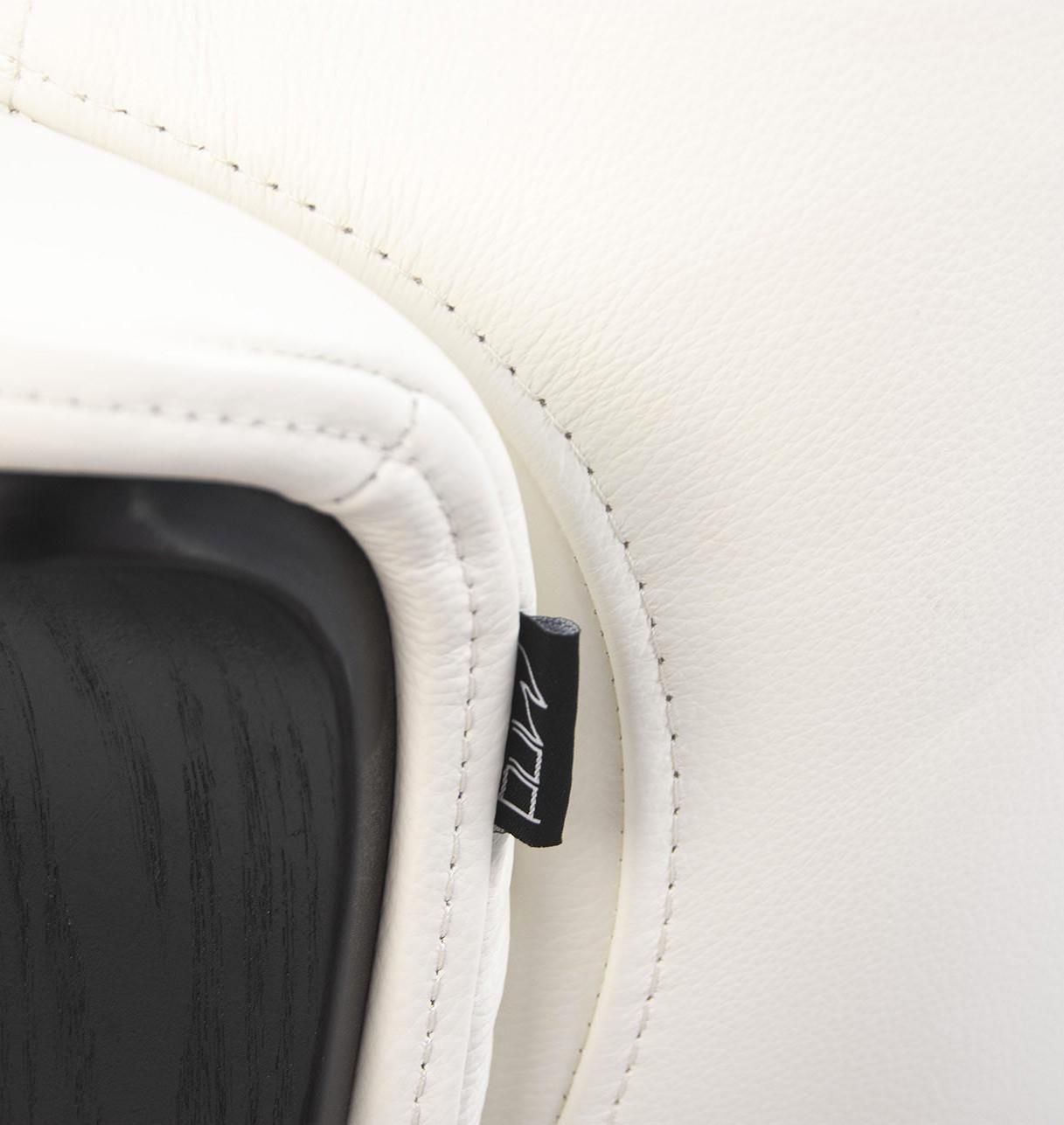El sillón Vega está completamente tapizado en piel de vacuno envuelto en una carcasa de madera de roble negro. La elegancia de su revestimiento de madera enfatiza sus curvas y añade un toque adicional de calidez a este objeto con diseño atemporal . La base en forma de estrella de 4 radios es de acero anodizado gris antracita que permite una rotación de 360 °.