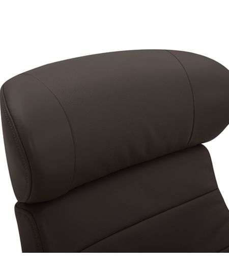 Fauteuil en cuir têtière originale et douce pour la nuque, réglable à souhait, une assise adaptée pour les reins et le dos, font du modèle VEGA, un fauteuil très tendance et agréable.