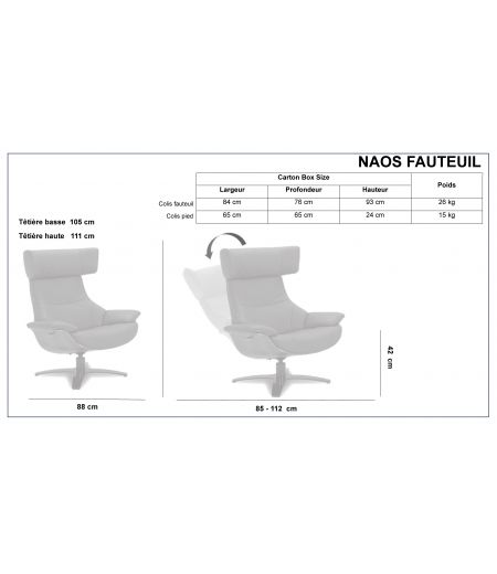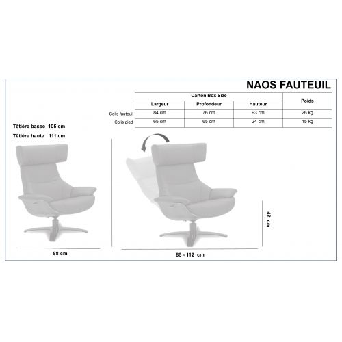 Fauteuil en cuir têtière originale et douce pour la nuque, réglable à souhait, une assise adaptée pour les reins et le dos, font du modèle NAOS, un fauteuil très tendance et agréable.